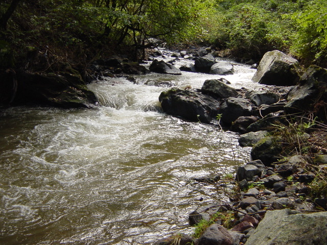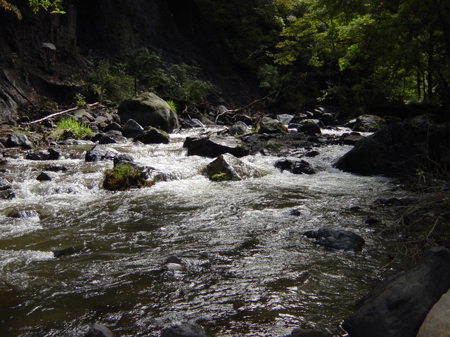 森の中の渓谷(落石もあります)