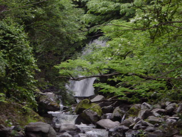 浅間奥入瀬は、サンランドの東側を別荘地に沿うように流れています。名前のとおり奥にあって、別荘地から急こう配の坂をずっとずっと下ってようやくたどり着きます。